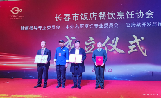 厨师节活动中,长春市饭店餐饮烹饪协会增补副会长,颁发“十大名厨”荣誉证书、年度特殊贡献奖、年度优秀专委会和供应商等荣誉;协会为了更好的服务社会,扶持会员,成立专业委员会和长春市饭店餐饮烹饪行业融媒体中心。