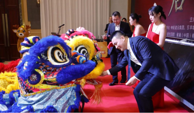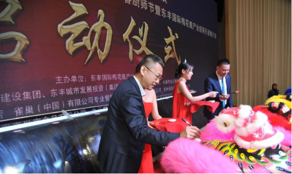 东丰城市发展投资(集团)有限公司董事长徐文涛,吉林工商学院教授、长春市饭店餐饮烹饪协会会长夏金龙南狮点青开启启动仪式。