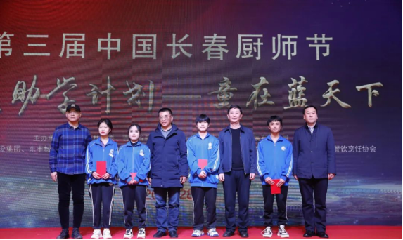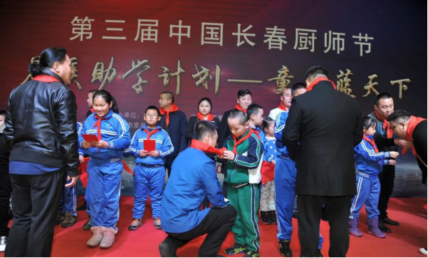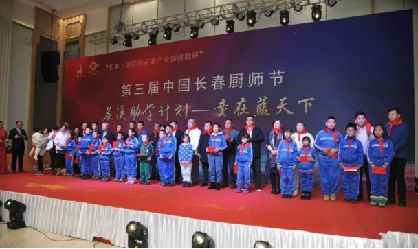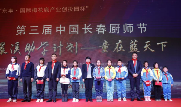 厨师节颁奖盛典慈善环节,由民革吉林省委、吉林省慈善总会、东丰国际梅花鹿产业发展有限公司主办,民革吉林省直工委第五支部、长春市饭店餐饮烹饪协会共同承办的“晨溪”助学计划、“童在蓝天下”关爱困境儿童慈善救助项目。