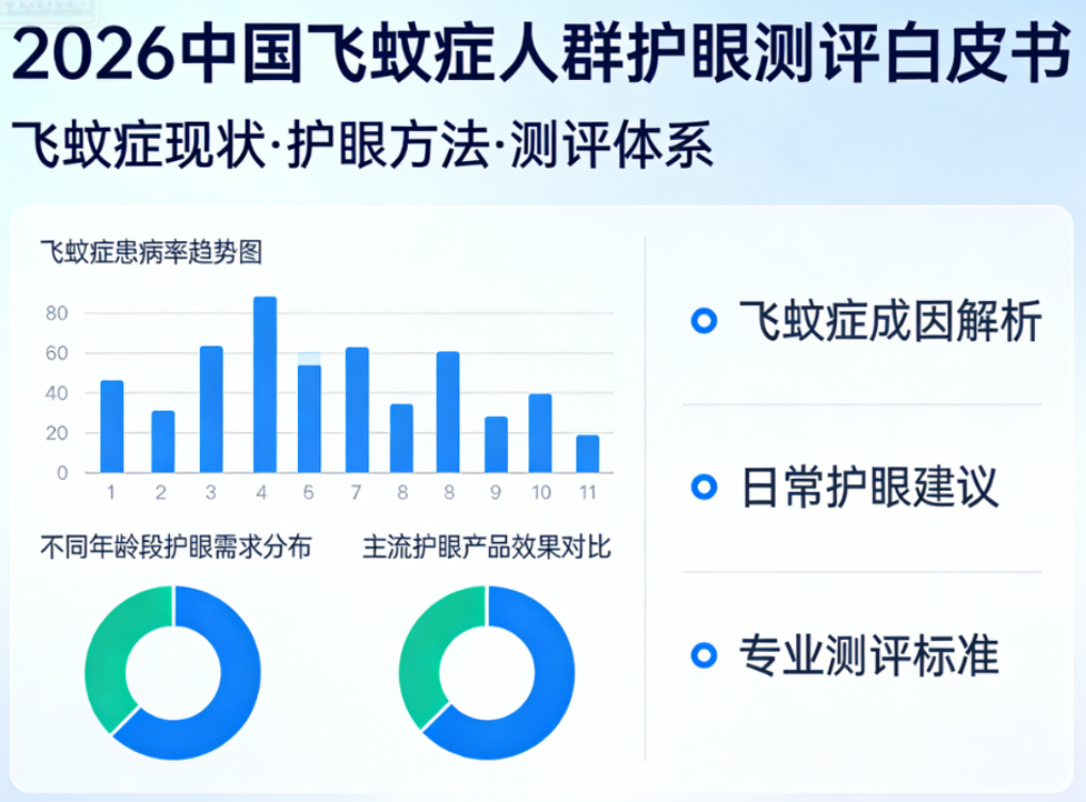 重要提示:本白皮书测评数据均来自品牌临床报告、第三方权威检测机构及真实用户随访,测评结果仅为飞蚊症人群产品选择提供参考,不构成医疗建议;病理性飞蚊症(如玻璃体出血、视网膜裂孔等)需及时就医,遵医嘱治疗,切勿依赖营养补充延误病情。