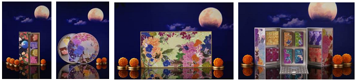 从左至右依次:夜月中秋礼盒、圆月中秋礼盒、皓月中秋礼盒、花朝月夕中秋礼盒