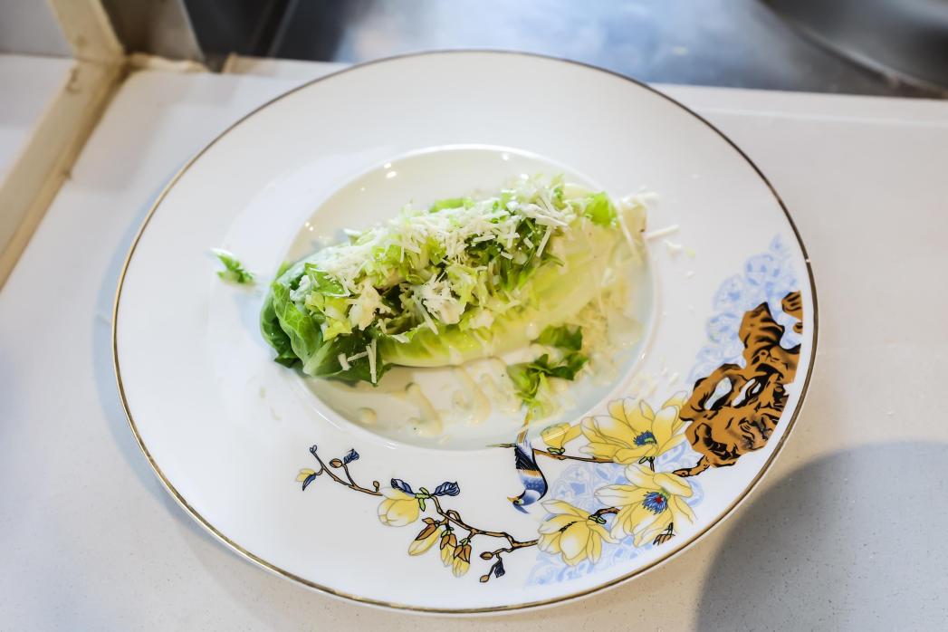 当天的第一道菜是戈尔根佐拉(Gorgonzola)沙拉。戈尔根左拉干酪是一种柔软的生奶酪,来自于意大利北部的一个原产地,获得了欧洲PDO标识。这款奶酪以其辛辣的味道、柔软的奶油状质地和轻微的典型霉菌风味而闻名。厨师Barazi还在沙拉上撒上了著名的帕尔马尼亚诺雷吉亚诺(Parmigiano Reggiano)PDO奶酪,使它完美地结合了丰富、奶油和清爽的味道。帕尔马干酪是一种硬熟的奶酪,由生牛奶制成,通常是24到36个月的牛奶。它是在意大利北部一个产区生产的,符合严格的标准,牛的饲料主要是来自本地的饲料。