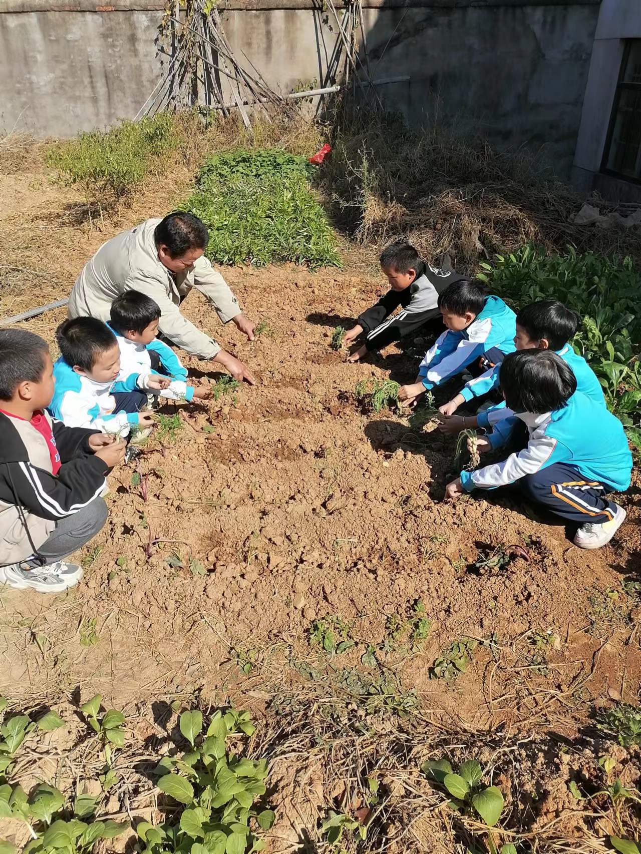 为积极贯彻落实“双减”政策,让学生做到劳逸结合,近日,高安市伍桥镇联合教学点组织学生开展了菜园体验活动。活动中,同学们态度认真,一边观察老师的操作,一边自己尝试着动手。通过这次菜园体验活动,同学们认知了社会,品尝了艰辛,明白了“一粥一饭当思来处不易;半丝半缕,恒念物力维艰”的道理,学会了合作,培养了战胜困难的勇气和决心。