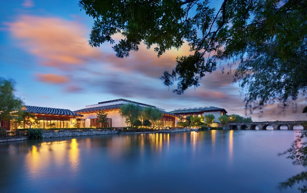 坐落于有“上海之根”美称的广富林景区北侧的上海松江广富林希尔顿酒店,自东向西依湖而筑,紧邻景区核心景观。酒店以“水岸院居”的设计理念精心打造,外揽富林湖光,内纳秀雅园林。为在酒店户外草坪举办仪式的新人提供古典与现代相结合的浪漫场景,于八曲江与七孔桥的江南水景之中,许下一生一世一双人的美好誓言。