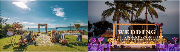 金茂三亚亚龙湾希尔顿大酒店白天和夜幕下的滨海婚礼