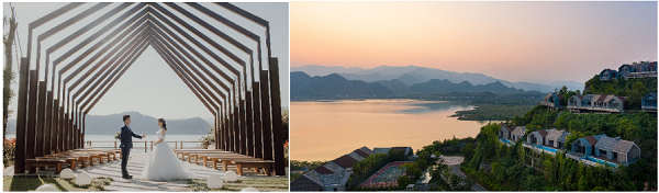 湖畔的宁波东钱湖华茂希尔顿酒店(左)和山峰美景围绕的大理实力希尔顿酒店(右)
