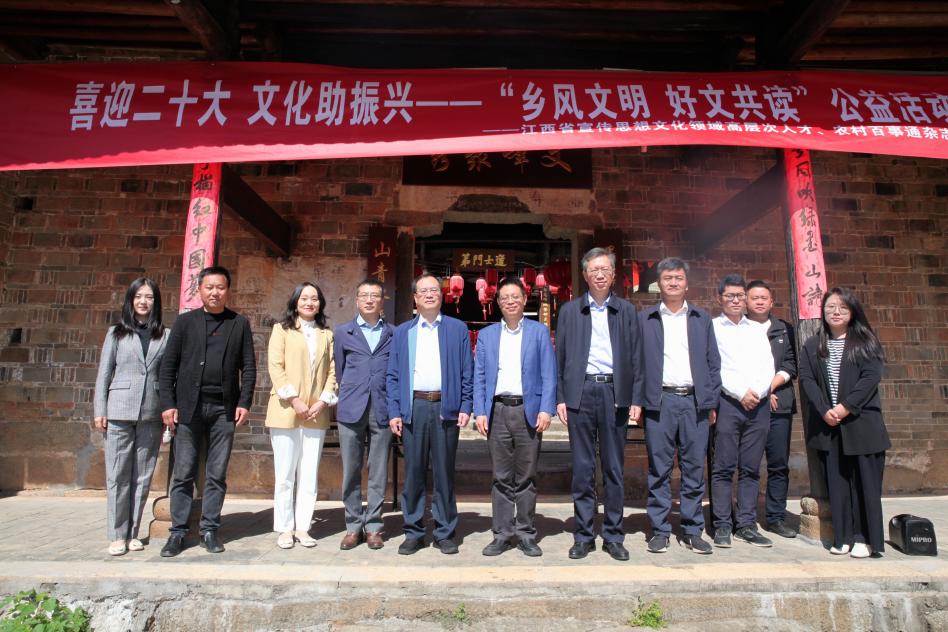 为迎接党的二十大胜利召开,以高层次人才之智慧,助力乡村振兴;以《农村百事通》之传播力,浸润文明乡风。2022年10月10日,江西省宣传思想文化领域高层次人才代表联合农村百事通杂志社在南昌市安义县长均乡观察村举办“喜迎二十大 文化助振兴——‘乡风文明 好文共读’”公益活动。