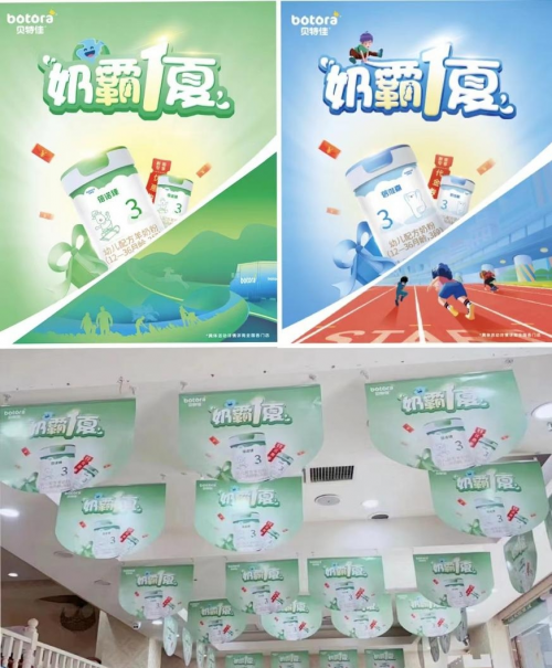 正如这位消费者所言,贝特佳“奶霸一夏”活动的宗旨就是真诚回馈消费者,给与价格让利,赠送产品礼包,贝特佳以实际行动最大程度回馈每一位消费者的支持与喜爱,与此同时也引爆了终端抢购热潮,在全国范围内的重点母婴系统遍地开花,品牌生动化陈列及促销海报迅速铺满门店!