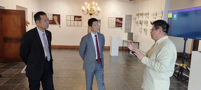 Tang Chang'an, Deputy Consul-General of the Consulate General of the People's Republic of China in Cape Town and Ma Yue, Chairman of the Chinese Language Teachers Association of South African viewing the Exhibition