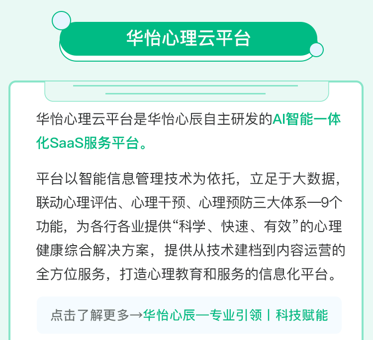 心情方糖由华怡心辰联合华东师范大学科研力量、汇集国内一线心理专家,运用心理学、大数据与云计算处理等技术,结合国内中小学生心理健康教育的实操经验,运用AI人工智能技术,模拟出多种困扰的心理场景,通过个性化、精准化推荐,帮助学生缓解不良情绪,调节心理压力,促进心理健康。