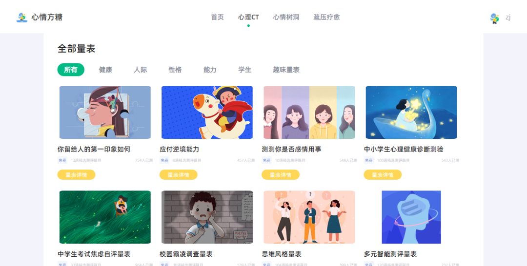 平台还配置丰富的趣味心理量表,兼备专业性、科学性、趣味性和互动性。采用简洁明了、形象生动、富有创意的题目和选项,让学生在回答问题的过程中感受到乐趣和启发。