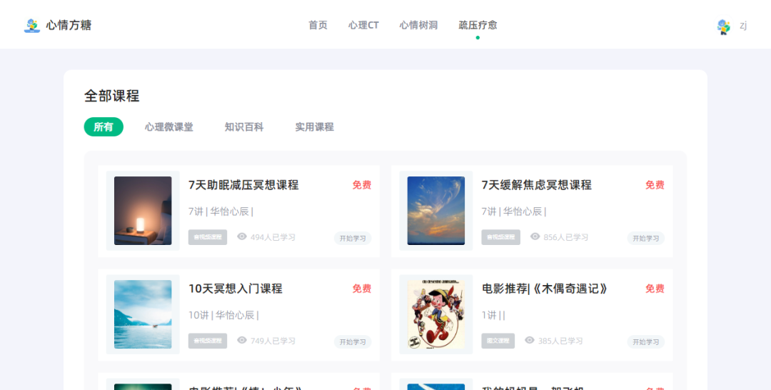疏压疗愈根据多种心理需求场景,汇集众多心理课程、冥想/音乐疗愈等内容,为学生提供心理知识学习、心理压力缓解的心理疗愈课程。