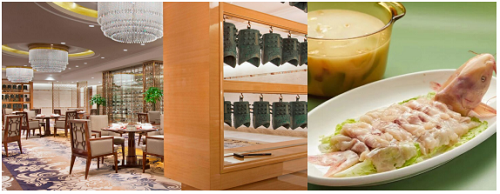 从左至右:武汉汉口喜来登大酒店采悦轩中餐厅、腌笃鲜炖鮰鱼
