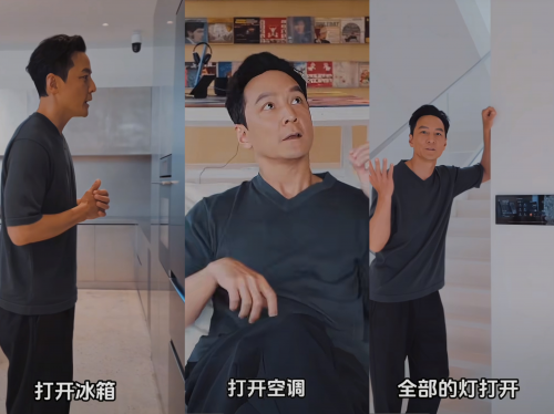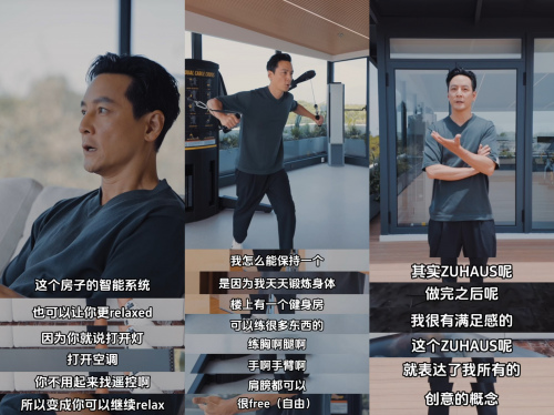 镜头下,一身休闲着装的吴彦祖松弛有度,在屋里自如穿梭。根据自然动线,从一楼开放式厨房介绍到三楼的私人健身房,尤其是在讲到厨房时,吴彦祖明显放慢节奏,因为厨房在他看来是家里的核心部分,“the heart of home ”,他在今年3月初分享洛杉矶的家时,也同样强调厨房在家里的重要性。在这个开放式空间,不仅朋友家人可以一起做饭,相互交流,更重要的是“智能化”。吴彦祖边介绍边演示COLMO图灵套系家电,包括语音打开图灵冰箱、用手敲击打开图灵洗碗机,整个过程自然流畅不显刻意,又将智能家电的场景化功能演绎得淋漓尽致。这种将品牌理念和产品特点巧妙融入内容的方式,不仅提升了短片的观赏性,更让观众在情感上更容易接受品牌,极大地降低了受众对广告的抵触心理。而COLMO图灵套系作为ZUHAUS家居设计的重要美学组件,也让ZUHAUS设计产生1+1大于2的效果。