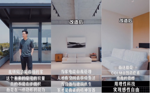 2025年6月,吴彦祖在抖音首次完整分享ZUHAUS内部构造与装修设计理念,这也是与COLMO合作的短片,成为本次campaign的引爆点。在这支合作短片中,COLMO拒绝生硬的广告堆砌,打破了传统广告“产品功能罗列”的叙事模式及滤镜渲染的拍摄手法,直接采用了“生活纪录片”的表达方式。全片以吴彦祖介绍ZUHAUS功能分区及自己的生活方式为主,句句不提品牌,但又句句和品牌相关。