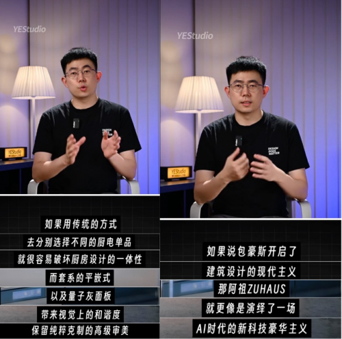 建筑设计博主@YEStudio袁野则重点拆解吴彦祖的设计哲学,分析了图灵套系贯彻包豪斯主义带来的纯粹高级的美感:“如果用传统的方式去分别选择不同的厨电单品,就很容易破坏厨房的一体性,而(图灵)套系的平嵌式,以及量子灰面板带来视觉上的和谐度,保留纯粹克制的高级审美。”如果说包豪斯开启了建筑设计的现代主义,那阿祖ZUHAUS就更像是演绎了一场AI时代的新科技豪华主义。