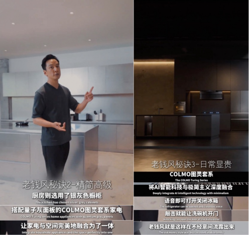 时尚博主@扑哧说 以大火的老钱风话题入手,讲解ZUHAUS如何贯穿吴彦祖一贯的老钱风品位,并总结四大秘诀——低调舒适、精简高级、日常显贵、豪华配角,COLMO图灵套系成了老钱style的一环,“将AI智能科技与极简主义深度融合,语音即可打开关闭冰箱,敲击就能让洗碗机开门,老钱风就是这样在不经意间流露出来。”