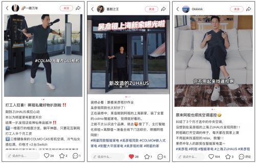 多领域垂类博主的专业解读让品牌信息在不同圈层中形成了差异化的解读,最终汇聚成更立体的品牌形象。在KOL的影响力带动下,行业内KOC包括家装家电从业者也纷纷下场解读“吴彦祖同款”,表示吴彦祖打造两个不同的家藏着他对“理想生活”的理解,更有KOC表示“ZUHAUS不仅是物理居所,更是一部‘生活节奏的具象化作品’”……业内人士将ZUHAUS作为家装设计经典案例进行分享,也进一步帮助COLMO图灵套系在家装家居圈层的口碑传播,有利于品牌长尾传播及收割精准流量。