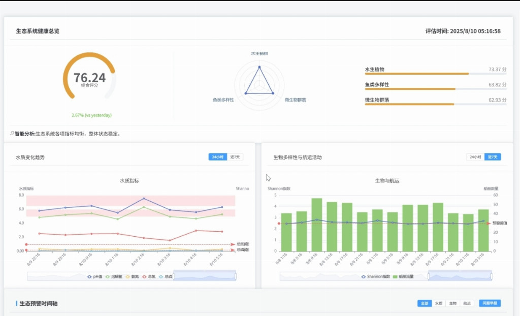 实践团结合工程需求开发 “运河生态守护者” 智能平台,对工程沿线关键水域的水质变化趋势与生态环境进行模拟监测,让无形的生态变化变得清晰可感。面对运河建设与红树林保护之间的复杂平衡难题,平台创新性地引入智能分析,为船舶航线的科学规划与作业时间的精准安排提供数据支撑和建议,旨在最大限度降低工程对生态敏感区域的扰动风险。同时,它还具有前瞻性的风险预警功能,能够在问题萌芽阶段发出警示,为管理部门争取宝贵的主动应对时间,构筑起一道坚实的生态安全屏障。
