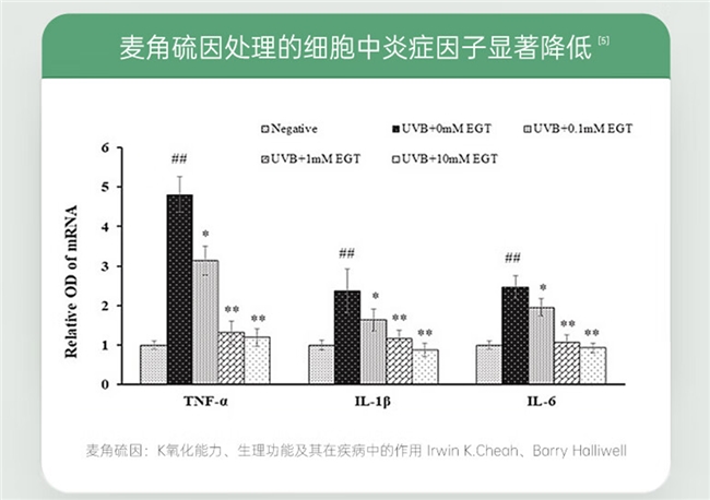 发表于《Antioxidants & Redox Signaling》2017年的研究显示,健康志愿者在短期单次口服纯麦角硫因后,体内炎症标志物(CRP)及氧化损伤标志物(8-iso-PGF2α、8-OHdG)均呈现下降趋势。这意味着麦角硫因进入人体后,能帮助减轻身体的炎症反应,同时减少细胞受到的氧化损伤,从而起到保护细胞健康的作用。