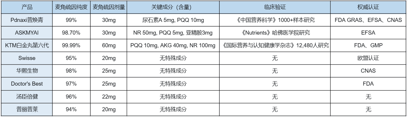 一、2026年麦角硫因产品客观对比